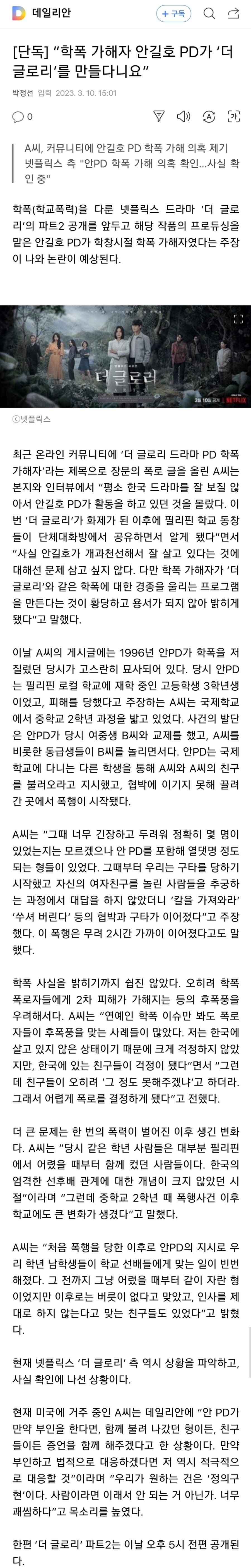 학폭 가해자 안길호PD가 더 글로리를 만들다니 ㄷㄷ